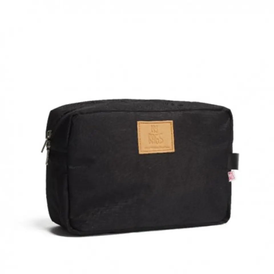 My Bag's Kosmetyczka Eco Black Elegancka, pojemna kosmetyczka, posiada zewnętrzną kieszonkę. Nylonowa podszewka zapobiega ewentualnemu wyciekowi kosmetyków na zewnątrz i sprawia, że kosmetyczka jest łatwa do czyszczenia w środku. Idealna na kosmetyki i akcesoria. Materiał zewnętrzny: z przetworzonych butelek PET, podszewka 100% nylon Sposób czyszczenia : prać ręcznie lub w pralce, w programie do wełny lub tkanin delikatnych, nie suszyć bębnowo, prasować na najniższej temperaturze. Wymiary: 26 x 18 x 11 cm CBECOBL