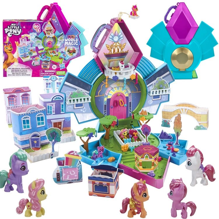 Przygotuj się na kucykowy zawrót głowy! Zestawy z serii Mini World Magic pozwalają na zbudowanie cudownego świata Equestrii! Tym razem możemy odtworzyć Kryształową Latarnię, w której małe Pony będą mogły przeżywać niesamowite przygody. Jakie? To już zależy od wyobraźni dziecka! Dlaczego warto wybrać ten zestaw?Kryształowa Latarnia zamknięta w formie niepozornej, przenośnej walizki posiada aż 55 różnych akcesoriów, które uatrakcyjnią zabawę! Część z nich można umieścić wewnątrz, według własnego pomysłu i stworzyć niepowtarzalne wnętrze, które będzie odzwierciedleniem kreatywności dziecka. Ponadto zestaw posiada też kartonowe elementy, które pozwolą na rozbudowanie scenerii! Gotowe miasteczko z pewnością stanie się miejscem wielu ciekawych zdarzeń! Ale, ale to jeszcze nie wszystko! Teraz czas na odrobinę magii! Niektóre elementy po zanurzeniu w zimnej wodzie zmieniają kolor! Oczywiście w zestawie musiały znaleźć się figurki milusińskich przyjaciół. Znajdziemy tu: Sunny Starscout, Zipp Storm, Poesey Bloom, Daring Flare oraz Maverick Mauve. Po skończonej zabawie wszystkie elementy można schować do walizeczki i zabrać ze sobą np. do najlepszej przyjaciółki, by wspólnie cieszyć się zabawą z My Little Pony! Co zawiera zestaw?