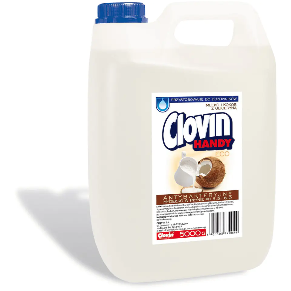 Mydło w płynie 5L ANTYBAKTERYJNE CLOVIN białe) mleko i kokos z gliceryn