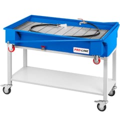 Kod producenta: 1000635Ekologiczna myjka warsztatowa z zamkniętym obiegiem płynu czyszczącego spełniająca wysokie standardy jakościowe. Myjkę warsztatową wykonano z wysokiej jakości materiałów stalowych i zabezpieczono trwałą proszkową farbą antykorozyjną. Stół do mycia części i urządzeń doskonale spełni swoje zadanie w produkcji przemysłowej wyrobów metalowych, w warsztatach naprawczych i remontowych, oraz wszędzie tam, gdzie proces technologiczny nakazuje odtłuszczenie i mycie powierzchniowe wyrobów. Myjki dedykowane są do warsztatów samochodowych i przemysłu motoryzacyjnego.Zasada działania myjki:Płyn myjący znajdujący się w dolnej części myjki podawany jest pompą elektryczną przepływową przez przewód zakończony pędzlem przelotowym na czyszczony przedmiot (np. część silnika ). Przepływająca przez pędzel ciecz, rozpuszcza i zmywa tłuste zanieczyszczenia zalegające na wyrobie podlegającym myciu. Na dnie pojemnika osadzają się związki cięższe, a płyn myjący (jako lżejszy) powraca do obiegu. Obieg płynu czyszczącego jest zamknięty.Dodatkowe informacje:
