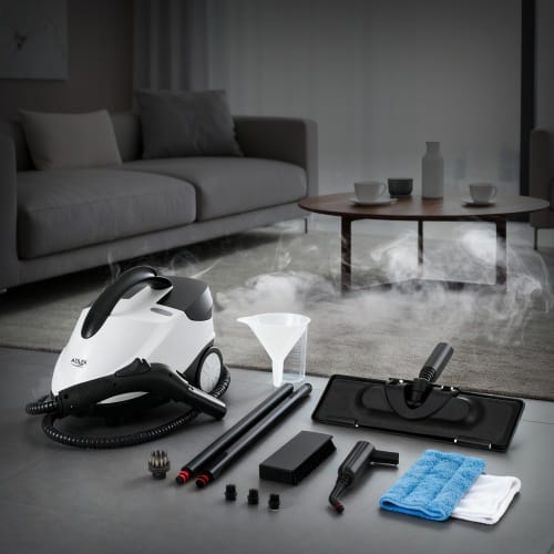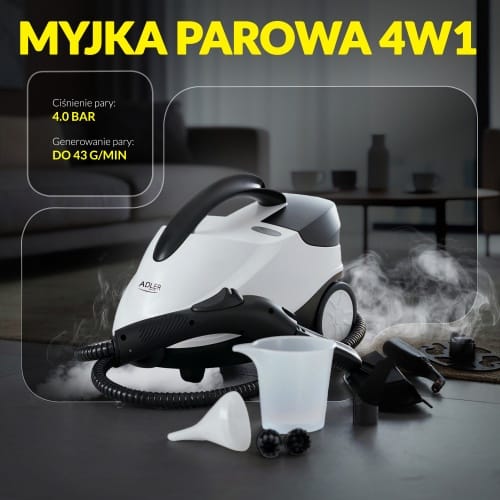 Myjka parowa 4w1 AD 7070Czyszczenie całego domu bez użycia chemii:4 Funkcje:mop parowy do mycia podłógczyścik do odświeżania ubrań i tapicerkiczyścik do fug i trudno dostępnych miejscmyjka do okien i szkłaCiśnienie pary: 4.0 barMożliwość ciągłego generowania paryGenerowanie pary: do 43g / minutęSzybkie nagrzewanie już w 6 minutRegulacja ilości generowanej pary w rączceZabezpieczenie przed niechcianym uruchomieniem „Child lock”Pojemność pojemnika na wodę: 1,5 litraWodoszczelność: IPX4Zasięg całkowity: 7 metrówOdświeżanie ubrań i tapicerki Bezpiecznik ciśnieniowy i zawór bezpieczeństwa przed zbyt dużym ciśnieniem wewnątrz zbiornikaW zestawie:2x 40 centymetrowe rury przedłużające zasięg myjki parowej o dodatkowe 80 centymetrów1x szczotka do mycia podłóg1x nakładka do odświeżania dywanów i chodników1x okrągła końcówka ze stali nierdzewnej do uporczywych zanieczyszczeń1x ściągaczka do szkła i okien1x zwijacz do przewodu zasilającegoCzęści eksploatacyjne w zestawie:1x ściereczka do odświeżania ubrań oraz tapicerki przy pomocy pary1x ręcznik/ścierka do mycia podłóg1x końcówka do fug i trudno dostępnych miejsc1x nylonowa okrągła końcówka do delikatnych powierzchniMoc: 2000 WZasilanie: 220-240V~ 50/60 Hz