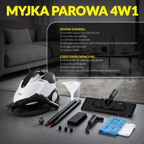 Myjka parowa 4w1 | Mop parowy | Czyścik do tapicerki | Myjka do szyb |