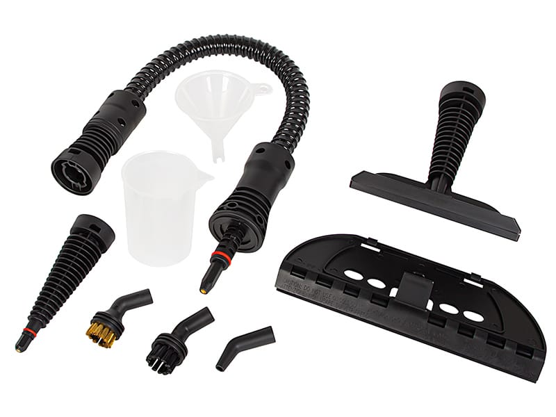 Funkcjonalność myjki parowej BLOW zawiera rozbudowany zestaw 8 końcówek, dostosowanych do różnych zastosowań: