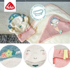 Myjka, Syrenka, z kolekcji: MorzeMiłośnicy pluskania w wodzie szybko docenią walory rękawicy w kształcie uroczej Syrenki, spełniającej rolę praktycznej myjki. Wystarczy założyć ją na rękę, by przywrócić jej życie, wywołać chęć zabawy i jednocześnie umyć nasze maleństwo szybko, dokładnie i sprawnie. Najwyższej jakości materiał frotte jest delikatny i przyjemny dla skóry dziecka. Dzięki niemu codzienna rutyna może stać się czystą przyjemnością! Myjkę dla niemowląt można używać nie tylko do kąpieli, ale także jako pacynkę: wystarczy ją założyć, a kolorowa Syrenka szybko ożywa.Wykonana z bardzo chłonnego materiału, z najwyższej jakości frotte.Łatwa do utrzymania w czystości.Niezbędna w codziennej pielęgnacji dziecka.Idealna na prezent, poprzez atrakcyjny wygląd.Materiał zewnętrzny: frotte (78% bawełna, 22% poliester), welur (100% poliester), tkanina drukowana (65% poliester, 35% bawełna), muślin (100% bawełna).Można prać w temp. 60deg;C.Wymiary myjki: 26 cm x 24 cm x 1 cm.Wymiary opakowania: 30 cm x 20 cm x 1 cm.Wszystkie zabawki niemieckiej marki FEHN są bezpieczne dla dzieci od 0 lat.Wykonane są z najlepszej jakości materiałów.Spełniają normy EN71, CE. Przetestowane pod kątem bezpieczeństwa przez niezależne instytuty badawcze.