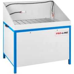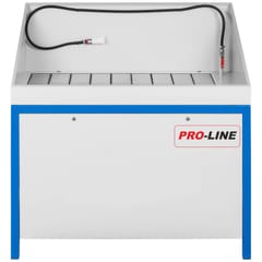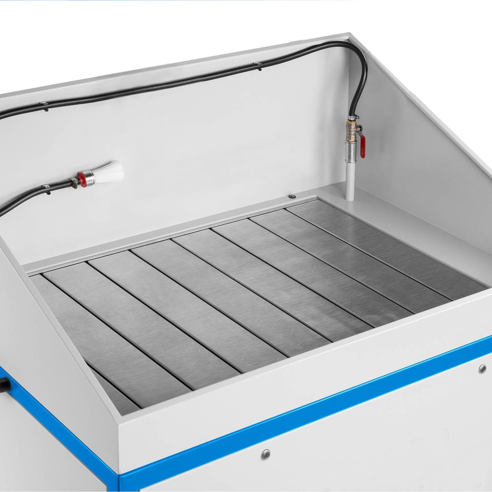 Kod producenta: 1000626Ekologiczna myjka warsztatowa z zamkniętym obiegiem płynu czyszczącego spełniająca wysokie standardy jakościowe. Myjkę warsztatową wykonano z wysokiej jakości materiałów stalowych i zabezpieczono trwałą proszkową farbą antykorozyjną. Stół do mycia części i urządzeń doskonale spełni swoje zadanie w produkcji przemysłowej wyrobów metalowych, w warsztatach naprawczych i remontowych, oraz wszędzie tam, gdzie proces technologiczny nakazuje odtłuszczenie i mycie powierzchniowe wyrobów. Zasada działania myjki:Płyn myjący znajdujący się w dolnej części beczki podawany jest pompą elektryczną przepływową przez przewód zakończony pędzlem przelotowym na czyszczony przedmiot (np. część silnika ). Przepływająca przez pędzel ciecz, rozpuszcza i zmywa tłuste zanieczyszczenia zalegające na wyrobie podlegającym myciu. Na dnie beczki osadzają się związki cięższe, a płyn myjący (jako lżejszy) powraca do obiegu. Obieg płynu czyszczącego jest zamknięty.Dodatkowe informacje: