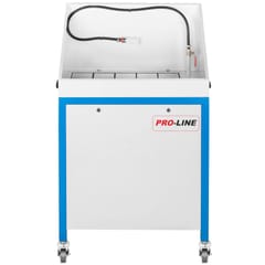 Kod producenta: 1000622Ekologiczna myjka warsztatowa z zamkniętym obiegiem płynu czyszczącego spełniająca wysokie standardy jakościowe. Myjkę warsztatową wykonano z wysokiej jakości materiałów stalowych i zabezpieczono trwałą proszkową farbą antykorozyjną. Stół do mycia części i urządzeń doskonale spełni swoje zadanie w produkcji przemysłowej wyrobów metalowych, w warsztatach naprawczych i remontowych, oraz wszędzie tam, gdzie proces technologiczny nakazuje odtłuszczenie i mycie powierzchniowe wyrobów. Zasada działania myjki:Płyn myjący znajdujący się w dolnej części beczki podawany jest pompą elektryczną przepływową przez przewód zakończony pędzlem przelotowym na czyszczony przedmiot (np. część silnika ). Przepływająca przez pędzel ciecz, rozpuszcza i zmywa tłuste zanieczyszczenia zalegające na wyrobie podlegającym myciu. Na dnie beczki osadzają się związki cięższe, a płyn myjący (jako lżejszy) powraca do obiegu. Obieg płynu czyszczącego jest zamknięty.Dodatkowe informacje: