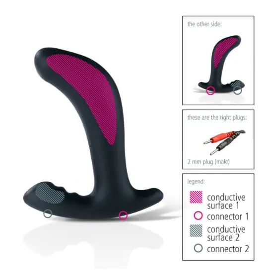 Posiada 4 pola elektrostymulujące. Pozwala to stymulować prostatę lub/i krocze.