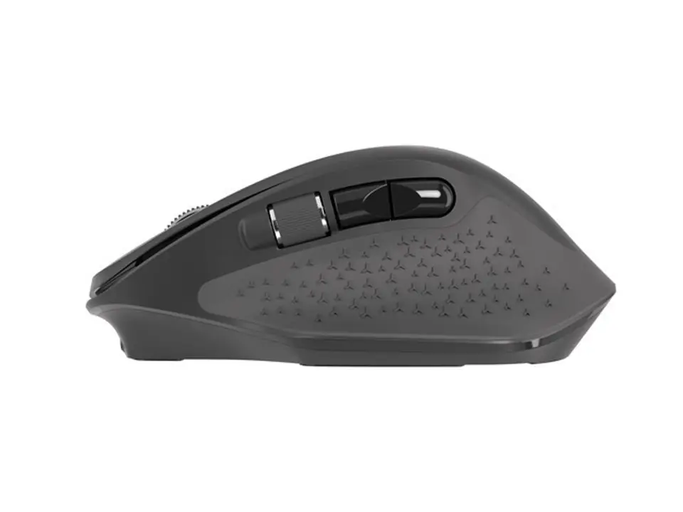 Natec Falcon to nowoczesna bezprzewodowa mysz biurowa z potrójnym trybem komunikacji, który pozwoli na połączenie myszki z trzema urządzeniami w tym samym czasie. Falcon, dzięki specjalnie zaprojektowanym kształcie zmniejsza obciążenie mięśni i polepsza ułożenie dłoni, co więcej zachwyca swoją funkcjonalnością oraz wysokim komfortem użytkowania. Poznaj Natec Falcon, Twoją nową mysz biurową.Bezprzewodowe połączenie z wieloma urządzeniami Mając do wyboru odbiornik USB 2,4 GHz oraz łączność Bluetooth 5.0,z łatwością połączysz Natec Falcon z trzema urządzeniami. Co więcej, w zaledwie kilka sekund przełączysz się pomiędzy nimi jednym przyciskiem bez konieczności ponownego parowania. Zastosowanie technologii Bluetooth 5.0 pozwala na ciągła i stabilną pracę bez zbędnych przerwań sygnału do 10 m. Natomiast kabel użyjesz tylko i wyłącznie, podczas ładowania twojej ulubionej myszki.Technologia Powersave inteligentne zarządzanie energiąNatec Falcon za sprawą pojemnego akumulatora o pojemności 500 mAh oraz zastosowaniu technologii PowerSave,daje gwarancję długiej pracy na jednym ładowaniu. Myszka Natec Falcon zapewnia bezstresową pracę, już nie musisz pamiętać o posiadaniu przy sobie zastępczychakumulatorów. W przypadku rozładowania myszki, zwyczajnie podłącz kabel i kontynuuj swoją pracę równocześnieładując akumulator.Boczny scrollZmaksymalizowaliśmy Twój komfort pracy poprzez zaimplementowanie w myszce bocznego scrolla, który pozwoli na sprawne poruszanie się w poziomie, co znacznie przyśpieszy twoją pracę z wszelkiego rodzaju dokumentami. Natomiast dodatkowe 6 przycisków funkcyjnych, zwiększy Twoją produktywność w pracy, dzięki czemu nadrabianie zaległości po godzinach stanie się już tylko przeszłością.Technologia Silentclick ciche przełączniki głównych przyciskówNatec Falcon został wyposażony w technologię SilentClick, zmiany konstrukcyjne znacznie zredukowały dźwięk podczas końcowej fazy wciskania głównych przycisków.Praca jest o 90% cichsza w porównaniu do standardowych myszek dostępnych na rynku. Pracuj bez irytujących kliknięć i skoncentruj się na tym, co masz do zrobienia. Dołóż swoją cegiełkę do cichej i pełnej harmonii pracy w biurze.Ergonomiczna konstrukcjaNatec Falcon został zoptymalizowany dla osób praworęcznych maksymalizując wygodę użytkowania oraz pewny chwyt. Dzięki zastosowaniu antypoślizgowej powierzchni myszy po obu stronach myszka pewnie trzyma się Twojej dłoni nawet przy bardzo gwałtownych ruchach. Pracuj komfortowo przez wiele godzin czując w każdej minucie użytkowania, że myszka idealnie pasuje do Twojej dłoni nie mecząc jej przy dłuższych sesjach. Niewielkie rozmiary oraz duża funkcjonalność sprawia, że mysz jest idealnie dostosowana do nowoczesnego trybu życia.Nowoczesny sensor 3200 DPIW myszce Natec Falcon masz do czynienia z wysokiej jakości, nowoczesnym sensorem optycznym o maksymalnej rozdzielczości 3200 DPI. Zapewni Ci on precyzję działania niezależnie od powierzchni, po której będzie się poruszać mysz, gwarantując komfortową pracę, nawet gdy wymagana jest maksymalna dokładność i precyzja działania.Przycisk zmiany DPIDedykowany przycisk DPI SWITCH umieszczony na wierzchu myszki pozwoli Ci sprawnie zmieniać poziomy rozdzielczości bez potrzeby dodatkowej konfiguracji ich w systemie. Do dyspozycji otrzymujesz aż 5 opcji od 800 DPI, do 3 200 DPI. Szybka zmiana daje Ci większe możliwości działania i możliwość dostosowania myszy pod swoje własne preferencje.Mistrzowska prezencja i wykonaniaNatec Falcon został zaprojektowany ze starannie wyselekcjonowanych materiałów, wyrzeźbiony kształt tej wygodnej myszy zapewnia podparcie dłoni i nadgarstka w naturalnej i wygodnej pozycji przez wiele godzin. Myszka wykonana w ciemnej, klasycznej kolorystyce świetnie prezentuje się na spotkaniach biznesowych, chwalącsię dyskretnie swoim srebrnym wykończeniem przy obu scrollach. Całość wygląda nie tylko schludnie i estetycznie, ale też nowocześnie ciesząc oko wizerunkiem myszy klasy premium.