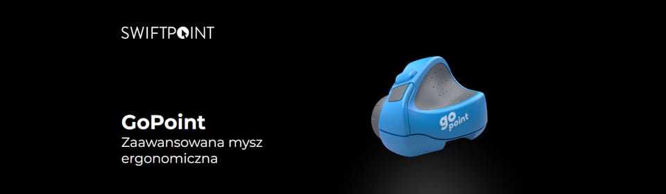 GoPoint to zaawansowana technologicznie myszka ergonomiczna firmy Swiftpoint, zaprojektowana z myślą o najbardziej wymagających użytkownikach, którzy poza samą wygodą użytkowania, szukają urządzenia multifunkcjonalnego nadającego się do pracy również w podróży. Myszka może być wykorzystywana jako wirtualny prezenter podczas wideokonferencji. Model GoPoint dba również o nasze zdrowie poprzez odpowiednie planowanie przerw w naszej pracy. Ergonomiczny kształt i kompaktowa budowa ( 8,4 x 8,4 x 5,5 cm) gwarantują wygodne użytkowanie w każdych warunkach. Dzięki technologii Bluetooth 4.0 można bez problemu połączyć się z innymi urządzeniami mobilnymi, takimi jak notebook czy tablet. Model GoPoint umożliwia bezprzewodową pracę przez 2 tygodnie przy pełnym naładowaniu baterii. W przypadku konieczności podłączenia do zasilania, już po minucie można korzystać z myszki przez godzinę.