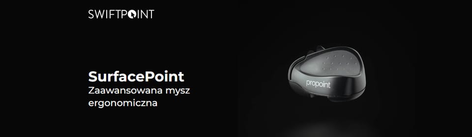 SurfacePoint to zaawansowane technologicznie urządzenie firmy Swiftpoint, które zostało zaprojektowane z myślą o najbardziej wymagających użytkownikach, którzy poszukują ergonomicznej myszki nie tylko dla wygody użytkowania, ale także jako narzędzia wielofunkcyjnego idealnego do pracy w podróży. Bezprzewodowa myszka SurfacePoint integruje funkcje myszy z udogodnieniami umożliwiającymi szybki dostęp do najczęściej używanych aplikacji, dokumentów i linków. Dodatkowo, oferuje sterowanie gestami i może pełnić rolę prezentera na sali lub wirtualnego prezentera podczas wideokonferencji. Myszka dba również o zdrowie użytkownika poprzez odpowiednie planowanie przerw w pracy. Jej ergonomiczny kształt i kompaktowa budowa (5.6 x 4 x 3.3 cm) zapewniają wygodę użytkowania w różnych warunkach. Dzięki technologii Bluetooth 4.0 łatwo można ją połączyć z innymi urządzeniami mobilnymi, takimi jak notebooki czy tablety. Model SurfacePoint umożliwia bezprzewodową pracę przez 2 tygodnie po pełnym naładowaniu baterii. W przypadku konieczności podłączenia do zasilania, już po minucie można korzystać z myszki przez godzinę.