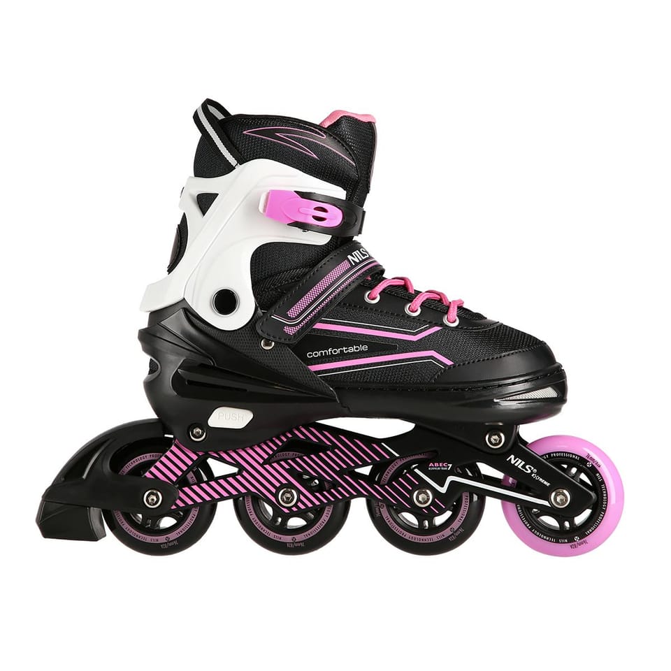NA1169A Nils Extreme to model łyżworolek przeznaczony dla początkujących oraz średniozaawansowanych pasjonatów jazdy. Jest połączeniem ciekawego wzornictwa z najwyższej jakości materiałami, które gwarantują bardzo duży komfort użytkowania. Wysoka jakość wykonania But wykonany został z syntetycznej skóry, materiału EVA, siatki MESH oraz pianki o dużej gęstości. Dzięki temu jazda będzie niezwykle komfortowa. Dodatkowo posiada oddychającą membranę oraz jest wentylowany. Solidna konstrukcja Łyżworolka jest bardzo lekka dzięki aluminiowej płozie oraz podstawy buta, która wykonana jest z wysokiej jakości PP. Dodatkowo miękkie kółka gwarantują dobrą przyczepność do podłoża oraz dobrze absorbują wszystkie drgania, natomiast łożyska klasy ABEC7 zapewniają wysoką jakość trakcji. Bezpieczeństwo Zapięcie buta za pomocą klamry dwusekcyjnej, rzepa i sznurowadeł, zapewnia maksymalne bezpieczeństwo podczas jazdy, natomiast hamulec wykonany z najwyżej jakości PP odpornego na uderzenia spowoduje bezpieczne zatrzymanie, nawet przy stosunkowo dużych prędkościach. Możliwość regulacji Łyżworolki posiadają możliwość dopasowania rozmiaru buta do stopy użytkownika w 4 poziomach, dzięki czemu posłużą na wiele sezonów! Specyfikacja: Płoza łyżworolki: Aluminiowa Łożyska: ABEC7 But: półmiękki z systemem wentylacji Materiał: Mesh EVA Syntetyczna skóra Pianka o dużej gęstości Oddychająca membrana Kółka: PU 76mm/82A (M 39-42) Zapięcie: Klamra dwusekcyjna Pasek na rzep Sznurowanie Długość wewnętrzna buta: 240-260 mm Hamulec: PP odporne na uderzenia Uwagi: Nie przeznaczone do użytku komercyjnego Zgodne z normą PN-EN 13843:2009 Gwarancja 24 miesiące Importer: Abisal Sp. z o.o.| Polska | 41-807 Zabrze | ul. Pyskowicka 17 | e-mail: abisal@abisal.plAbisal Sp. z o.o. deklaruje, iż produkty sprzedawane przez firmę są bezpieczne i spełniają wymagania zawarte w Ustawie o ogólnym bezpieczeństwie produktów z dnia 12 grudnia 2003r. (Dz.U. z dnia 31 grudnia 2003r.)
