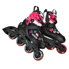 - Kolor: różowy Skorupa: PP Łożyska: ABEC-5 Kółka: PU Średnica kółek: XS 64 mm, S 64 mm, M 70 mm, L 72 mm Rozmiary: XS 29-32, S 33-36, M 37-40, L 40-43 Zapięcie: klamra, sznurowadła, pasek na rzep System personalizacji: wymienne naszywki dekoracyjne na rzep (w zestawie), Maksymalna waga użytkownika: 60 kg Waga produktu: 2,1 kg