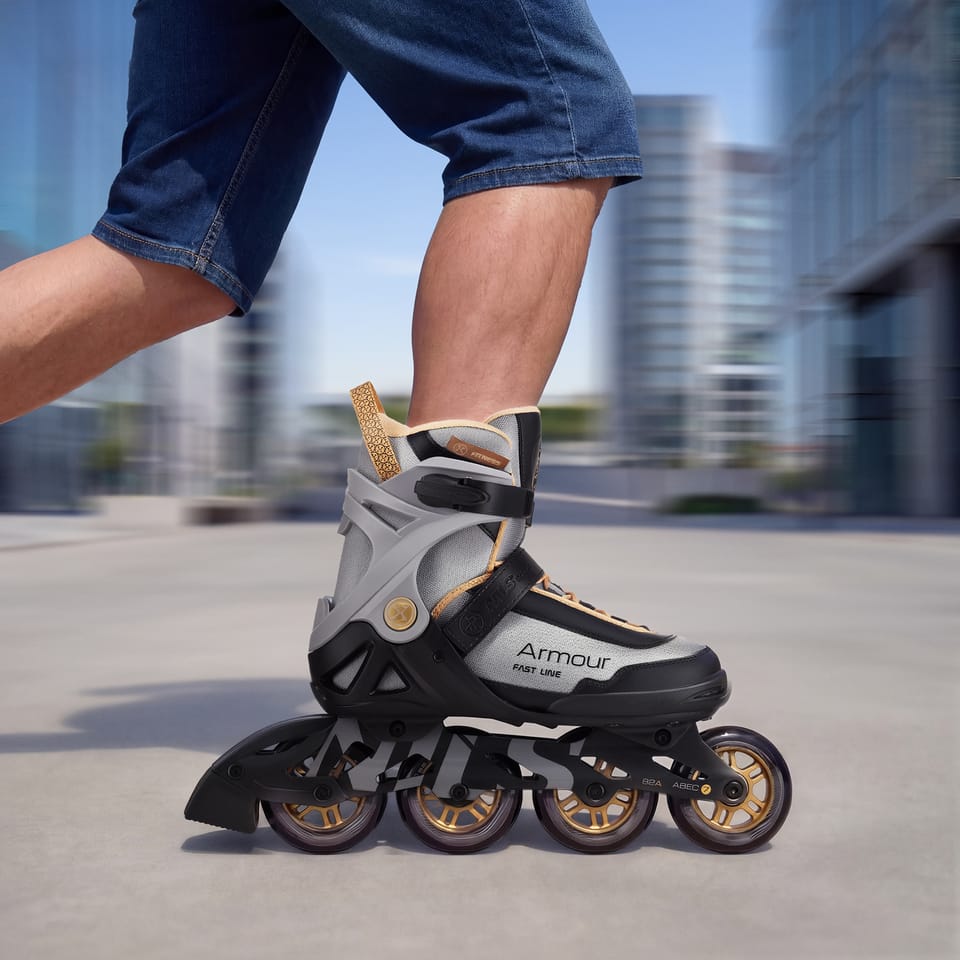 Łyżworolki ARMOUR NA22151 marki NILS Extreme to idealne połączenie funkcjonalności, stylu i trwałości, stworzone z myślą o młodzieży oraz dorosłych użytkownikach. Ich nowoczesny design przyciąga uwagę, podczas gdy solidne materiały gwarantują długotrwałe użytkowanie. Dzięki tym rolkom jazda rekreacyjna staje się nie tylko przyjemnością, ale i wyrazem osobistego stylu – to doskonały wybór dla tych, którzy cenią sobie jakość i komfort podczas aktywnego spędzania czasu.BEZPIECZEŃSTWOŁyżworolki ARMOUR zostały zaprojektowane z myślą o maksymalnym bezpieczeństwie użytkownika. Wyposażone w skuteczny hamulec, gwarantują pewne zatrzymanie w każdych warunkach, co jest kluczowe zwłaszcza w gęstym miejskim ruchu.Skorupa z polipropylenu odpornego na uderzenia jest tarczą ochronną dla stóp. Wytrzymały materiał amortyzuje wstrząsy i chroni przed skutkami przypadkowych zderzeń, dając użytkownikom spokój ducha podczas jazdy.Zapięcia, w tym klamra, pasek na rzep i tradycyjne sznurowanie, to trzy poziomy zabezpieczeń, które łączą wygodę z optymalnym dopasowaniem. Dzięki nim łyżworolki ARMOUR mocno trzymają się stopy, co zapewnia kontrolę nad rolkami i zmniejsza ryzyko kontuzji wynikających z nieprawidłowego ułożenia stopy.KOMFORT JAZDYŁyżworolki ARMOUR to nie tylko bezpieczeństwo, ale również komfort jazdy na najwyższym poziomie.Materiały użyte do produkcji łyżworolek, takie jak velvet czy przewiewny mesh stanowią synonim komfortu. Te wysokojakościowe tkaniny zostały wyselekcjonowane, aby zapewnić optymalną cyrkulację powietrza i zapobiegać przegrzewaniu się stóp nawet podczas długich sesji na rolkach. Ponadto pod podeszwą umieszczono trzy otwory wentylacyjne, które dodatkowo poprawiają przepływ powietrza, zapewniając lepszą wentylację.Profilowana wkładka doskonale dopasowuje się do kształtu stopy, zapewniając nie tylko wygodę, ale i odpowiednie wsparcie w kluczowych miejscach, co ma istotne znaczenie podczas wykonywania różnorodnych manewrów.Duże koła o średnicy 84 mm lub 90 mm, zależnie od wybranego rozmiaru, oferują płynną i szybką jazdę, doskonale absorbując drobne nierówności terenu. W połączeniu z precyzyjnymi łożyskami ABEC-7, które redukują tarcie, użytkownicy mogą cieszyć się bezproblemową jazdą z minimalnym wysiłkiem.Wybierając łyżworolki ARMOUR NA22151 marki NILS EXTREME, inwestujesz w produkt, który nie tylko stawia bezpieczeństwo na pierwszym miejscu, ale również zapewnia wygodną i przyjemną jazdę zarówno dla początkujących, jak i bardziej doświadczonych miłośników rolkowania. Specyfikacja: Płoza: aluminiumŁożyska: karbon, ABEC 7But: polipropylen, półmiękki, wentylowanyKółka: PU 84 mm / 82A (rozm. 38–41) PU 90 mm / 82A (rozm. 42–45) Wkładka: Oddychająca membrana Materiał EVA Wyściółka: Velvet Siatka MESH Profilowana wkładka Dodatkowe otwory wentylacyjne: tak (3x) Zapięcie: Klamra Pasek na rzep Sznurowanie Długość wewnętrzna buta: 291 mmŁyżworolka wyposażona w hamulec Uwagi: Nie przeznaczone do użytku komercyjnegoZgodne z normą PN-EN 13843:2009Gwarancja 24 miesiące Importer: Abisal Sp. z o.o.| Polska | 41-807 Zabrze | ul. Pyskowicka 17 | e-mail: abisal@abisal.plAbisal Sp. z o.o. deklaruje, iż produkty sprzedawane przez firmę są bezpieczne i spełniają wymagania zawarte w Ustawie o ogólnym bezpieczeństwie produktów z dnia 12 grudnia 2003r. (Dz.U. z dnia 31 grudnia 2003r.)