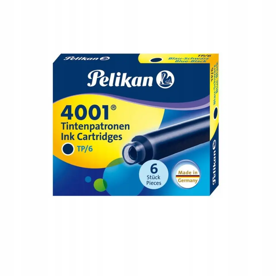 Standardowe, krótkie naboje atramentowe Standardowe naboje atramentowe przeznaczone do piór wiecznych na naboje marki Pelikan oraz wielu inych marek. Opakowanie zawera 6 naboi atramentowych TG/6 Dostepne wersje kolorystyczne: Niebiesko-czarny, blekit królewski, czarny brylantowy, czerwony brylantowy, zielony brylantowy, turkusowy, fioletowy, rózowy