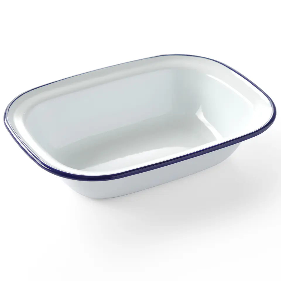- Stal pokryta białą emalią z delikatnym niebieskim brzegiem