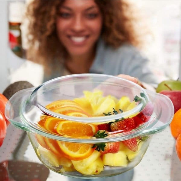 Kod produktu: 1029864Funkcjonalne okrągłe naczynie żaroodporne z pokrywą o pojemności 1,5L, idealne do przygotowywania zapiekanek, pieczeni oraz innych potraw. Wykonane z wysokiej jakości szkła borokrzemianowego, odporne na temperatury od -40deg;C do 450deg;C. Można je używać w piekarniku, mikrofalówce, opiekaczu, lodówce oraz myć w zmywarce. Dzięki przezroczystej budowie łatwo kontrolować proces gotowania, a gładka powierzchnia zapobiega przywieraniu potraw.Cechy produktu: