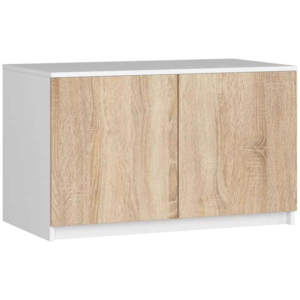 Elegancka w swej prostocie nadstawka na szafę S 90 cm. to propozycja skierowana do osób, które pragną zyskać jak najwięcej miejsca do przechowywania niezbędnych artykułów na stosunkowo niewielkiej powierzchni. Mebel został zaprojektowany w minimalistyczny sposób z wykorzystaniem bieli oraz dębu sonoma. Jasna kolorystyka nadstawki daje wiele możliwości aranżacyjnych. Produkt sprawdzi się w przedpokojach, sypialniach czy pomieszczeniach biurowych, pasując do szaf pochodzących z tej samej serii. Nadstawka zapewnia dużo przestrzeni do dowolnego zagospodarowania, łatwo się otwiera oraz zamyka.