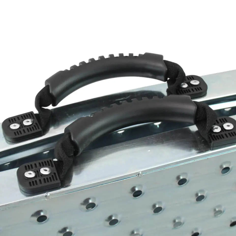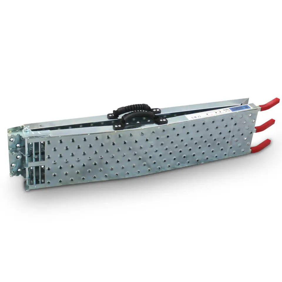 Rampa przeładunkowa, do szybkiego rozładowania i załadowania mniejszych pojazdów ,wykonana z mocnej stali, zabezpieczona przed korozją. Maksymalne obciążenie to aż 400kg na najazd. Powierzchnia antypoślizgowa zapewnia świetną stabilność.Dzięki temu , że rampa jest lekka, waży tylko 8,6kg , i posiada uchwyt można ją łatwo transportować .