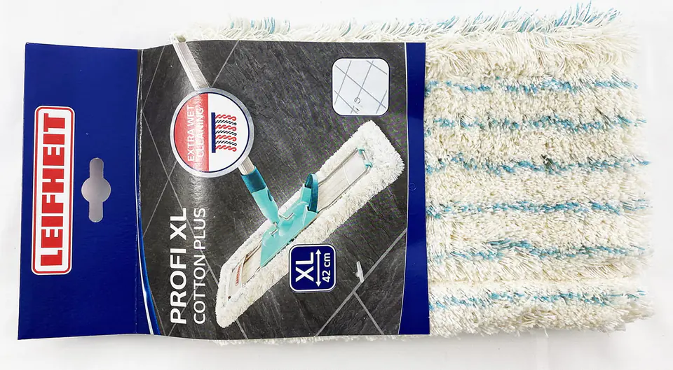 Nakładka cotton plus do mopa Profi marki Leifheit jest wymienną nakładką wykonaną z mieszanki włókien Supra i wysokiej jakości bawełny. Doskonała do podłóg kamiennych i płytek. Nakładka cotton plus do mopa Profi marki Leifheit jest wymienną nakładką do zastosowania we wszystkich mopach systemu Profi. Przeznaczona jest w szczególności do czyszczenia wszelkich powierzchni kamiennych oraz płytek. Nakładka cotton plus do mopa Profi jest niezwykle chłonna dzięki wysokiej zawartości mieszanki włókien Supra i bawełny. Włókna Supra dogłębnie usuwają brud, a włókna bawełny wchłaniają go razem z wodą. Nakładkę można prać w temp. 60 st. C (bez płynu do płukania tkanin). Skutecznie czyści także po wielokrotnym praniu. Długość 42 cm. System Profi Leifheit umożliwia stosowanie wielu doskonałych nakładek do mopa do wszystkich rodzajów podłóg. Najwyższa jakość i wybór, który zadowoli najbardziej wymagających klientów - to cechy, które charakteryzują nie tylko wymienne nakładki do mopów, ale wszystkie produkty niemieckiego producenta. Nakładka cotton plus do mopa Profi marki Leifheit jest materiałem eksploatacyjnym i nie jest objęta gwarancją producenta.