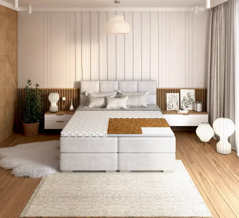 Nakładka na materac PIANKA KOKOS 7 cm: Powierzchnia spania – bardzo twarda Pianka poliuretanowa T25 - daje odpowiednie podparcie kręgosłupa i całego ciała Kokos – zapewnia dobrą cyrkulacje powietrza i utwardza powierzchnię spania Oddychający pokrowiec PREMIUM JERSEY Zdejmowany pokrowiec - zapinany na zamek błyskawiczny. Antyalergiczne właściwości Certyfikat Oeko-Tex Nakładka na materac PIANKA KOKOS 7 cm Dwustronna nakładka na materac PIANKA KOKOS 7 cm stanowi doskonałe rozwiązanie dla osób, które pragną zamienić niewygodne łóżko na bardziej komfortowe miejsce do spania. Z czego składa się nakładka na materac PIANKA KOKOS 7 cm? Bazą nakładki jest pianka poliuretanowa T25 o grubości 7 centymetrów. Jej głównym zadaniem jest odpowiednia amortyzacja ciała śpiącej osoby oraz właściwe podparcie kręgosłupa. Dzięki swojej budowie oraz właściwościom fizycznym jest elastyczna i sprężysta, a przede wszystkim wygodna. Posiada także przewiewną strukturę, co jest nie bez znaczenia dla osób cierpiących na alergię na roztocza kurzu domowego. Druga warstwa nakładki na materac to wkład kokosowy, który za zadanie ma utwardzać i usztywniać całość. Jest całkowicie ekologiczny, a to ze względu na zastosowanie do jego budowy włókien ze skorupy orzecha kokosowego. Ten naturalny budulec jest przewiewny, zapewnia odpowiednią cyrkulację powietrza oraz zapobiega nadmiernemu poceniu się. Zobacz inne nakładki z naszej oferty. Pokrowiec w nakładce PIANKA KOKOS 7 cm Dzięki zastosowaniu w nakładce pokrowca Premium jest ona jeszcze bardziej wygodna i komfortowa. Wykonany z wysokiej jakości materiałów hipoalergicznych zabezpiecza przed dostaniem się do środka wszelkich zanieczyszczeń, w tym grzybów, roztoczy i innych mikroorganizmów. Jest przy tym przyjemna w dotyku oraz łatwa w utrzymaniu czystości, a to dzięki wszytemu zamkowi ułatwiającemu ściąganie pokrowca z nakładki. Dobierz kołdrę i poduszkę z naszej oferty Kolory materiałów użytych w produkcji materaca mogą się różnić od tych przedstawionych na zdjęciu, z zachowaniem ich właściwości. Materiały użyte przy produkcji materacy to różnego rodzaju pianki poliuretanowe, lateksy, visco itp., są to produkty o wysokim współczynniku ściśliwości oraz sprężystości, dlatego jako producent zastrzegamy sobie prawo do tolerancji ujemnej i dodatniej +/- 2% na szerokości i długości materaca oraz +/- 1 cm dla jego wysokości.