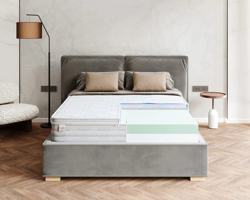 Nakładka na materac VISCO BUBBLE: Powierzchnia spania – średnio miękka Pianka termoplastyczna BUBBLEGUM – delikatnie otula ciało pod wpływem ciepła Oddychający pokrowiec NANO JERSEY BORDER Zdejmowany pokrowiec - zapinany na zamek błyskawiczny. Antyalergiczne właściwości Certyfikat Oeko-Tex Nakładka na materac VISCO BUBBLE VISCO BUBBLE to jedna z trzech nakładek stworzonych specjalnie z myślą o materacu modułowym ORIA, który pozwala na precyzyjne dopasowanie komfortu snu do indywidualnych potrzeb użytkownika. Nakładka mocowana jest bezpośrednio do górnej części pokrowca materaca za pomocą praktycznego zamka błyskawicznego, co gwarantuje stabilność, bezpieczeństwo użytkowania oraz szybki montaż. Nakładka na materac VISCO BUBBLE – popraw komfort swojego snu! Największym atutem pianki VISCO BUBBLE jest jej zdolność do precyzyjnego dopasowywania się do kształtu ciała użytkownika. Dzięki tej właściwości nakładka gwarantuje efektywne odciążenie mięśni i stawów, umożliwiając ich pełne rozluźnienie oraz nocną regenerację. Z zalet tej pianki szczególnie zadowolone będą osoby, które zmagają się z porannym bólem pleców, karku czy sztywnością po przebudzeniu. Nakładka VISCO BUBBLE pozwala przenieść komfort snu na zupełnie nowy poziom – otula ciało miękkością, a jednocześnie zapewnia optymalne podparcie w newralgicznych punktach. Jeśli Twój obecny materac okazuje się zbyt twardy, nakładka z pianką VISCO BUBBLE będzie doskonałym wyborem. Zapewnia niski poziom twardości (H2), dzięki czemu zmiękcza powierzchnię spania, poprawiając komfort wypoczynku – szczególnie u osób szczupłych, które dzielą sztywny, podwójny materac z cięższym partnerem. Dodatkową zaletą nakładki są właściwości przeciwodleżynowe, które sprawiają, że doskonale sprawdzi się także w przypadku osób z ograniczoną mobilnością lub przebywających przez dłuższy czas w pozycji leżącej. To rozwiązanie, które nie tylko podnosi wygodę snu, ale również wspiera zdrowie i profilaktykę. Pokrowiec NANO JERSEY BORDER Pokrowiec NANO JERSEY BORDER zaprojektowano z myślą o zapewnieniu maksymalnej wygody i ergonomii podczas snu. Jego elastyczna struktura idealnie dopasowuje się zarówno do materaca, jak i kształtu ciała użytkownika, skutecznie redukując punkty ucisku i zwiększając komfort nocnego wypoczynku. Spodnią część stanowi tkanina JERSEY – wyjątkowo miękka, przewiewna i trwała, która wspomaga cyrkulację powietrza, dbając o świeżość i higienę. Praktyczny zamek błyskawiczny to dodatkowy atut, umożliwiający łatwe zdejmowanie i zakładanie pokrowca. Dobierz kołdrę i poduszkę z naszej oferty Kolory materiałów użytych w produkcji materaca mogą się różnić od tych przedstawionych na zdjęciu, z zachowaniem ich właściwości. Materiały użyte przy produkcji materacy to różnego rodzaju pianki poliuretanowe, lateksy, visco itp., są to produkty o wysokim współczynniku ściśliwości oraz sprężystości, dlatego jako producent zastrzegamy sobie prawo do tolerancji ujemnej i dodatniej +/- 2% na szerokości i długości materaca oraz +/- 1 cm dla jego wysokości.