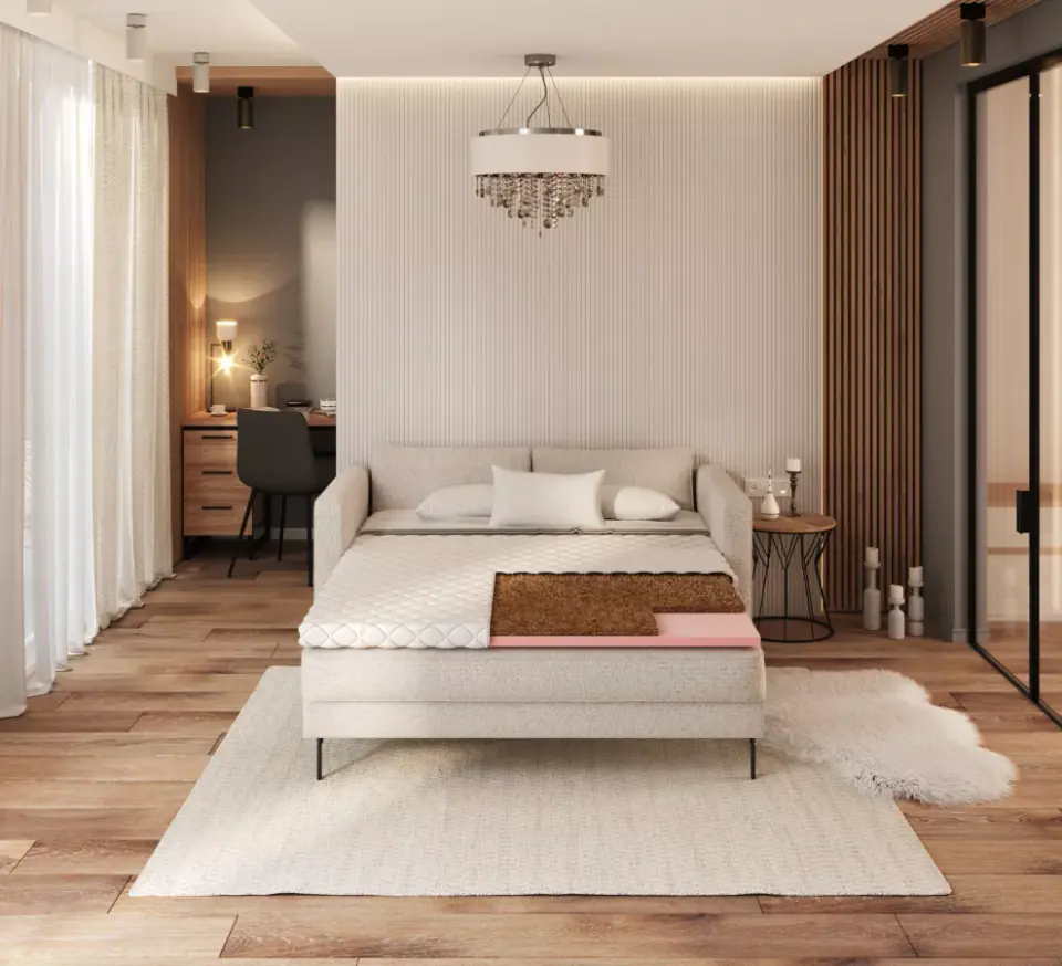 Zalety nakładki na materac VISCO KOKOS Jest dwustronna o zróżnicowanym stopniu twardości. Strona twarda to przewiewna wkładka kokosowa uniemożliwiająca pocenie się w nocy. Strona miękka to pianka VISCO, która idealnie dopasowuje się do sylwetki. Nakładka zmniejsza ucisk w okolicach bioder i karku. Wyposażona w zamek błyskawiczny, dzięki któremu łatwo zdjąć pokrowiec. Pokrowiec można prać w temperaturze 30 stopni Celsjusza. Nakładka na materac VISCO KOKOS To dwustronne rozwiązanie dla każdego, kto pragnie porządnie się wyspać. Z jednej strony – utwardzający wkład z warstwy kokosowej, z drugiej zaś – miękka pianka VISCO, która stanowi doskonałe podparcie pod kręgosłup. Jak zbudowana jest nakładka na materac VISCO KOKOS? Ta dwustronna nakładka składa się w dwóch warstw o różnych właściwościach każda. Pierwsze z nich to wkład wyprodukowany z włókien skorupy orzecha kokosowego. Jest twardy, usztywnia całość, a przy tym odznacza się niebywałą lekkością. Dzięki swojej przewiewności zapobiega rozwojowi grzybów, pleśni i roztoczy. Śpiąc na nim nie pocimy się, a sen jest wyjątkowo komfortowy. Druga warstwa to niezwykła pianka VISCO. Jej unikatowa budowa powoduje, że pod wpływem nacisku i temperatury ciała dopasowuje się ona do sylwetki śpiącej osoby. Dzięki temu leżąc na niej ma się wrażenie zapadania do środka. Sprawia to, że otula ona śpiącego z każdej strony dając nieporównywalnie większy z innymi piankami komfort podczas snu. Dobierz kołdrę i poduszkę z naszej oferty Pokrowiec użyty w nakładce na materac VISCO KOKOS Wykonany z najwyższej jakości materiałów hipoalergicznych pokrowiec jest całkowicie bezpieczny i przyjazny alergikom. Jego membranowa budowa nie przepuszcza zanieczyszczeń, w tym roztoczy kurzu domowego ani innych mikroorganizmów. Nie traci przy tym nic z wyjątkowej miękkości, a sen na nim to czysta przyjemność. Pokrowiec jest także wyposażony w zamek błyskawiczny który umożliwia łatwe ściąganie go z nakładki. Zobacz inne nakładki z naszej oferty.