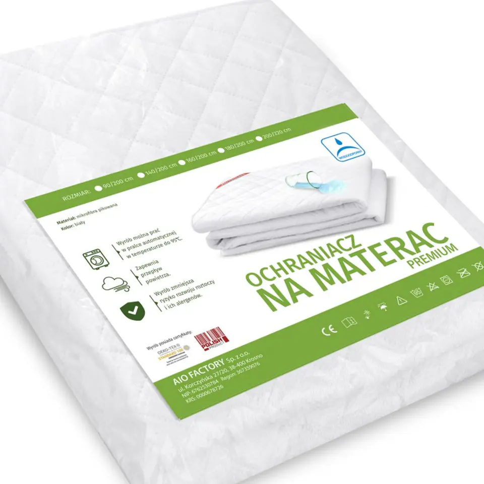 Warstwa chłonna skutecznie absorbuje pot, a wodoodporna warstwa poliuretanowa chroni materac przed rozlaniem i zapewnia odpowiednią cyrkulację powietrza. Narożniki ochraniacza wyposażone są w gumki zapewniające wygodne mocowanie do materaca, dzięki czemu ochraniacz zawsze pozostaje na swoim miejscu. Ochraniacz na materac posiada certyfikat Oeko-Tex Standard 100, który jest uznawany na całym świecie za znak jakości dla produktów tekstylnych, które są wykonane wyłącznie z materiałów nieszkodliwych dla zdrowia.