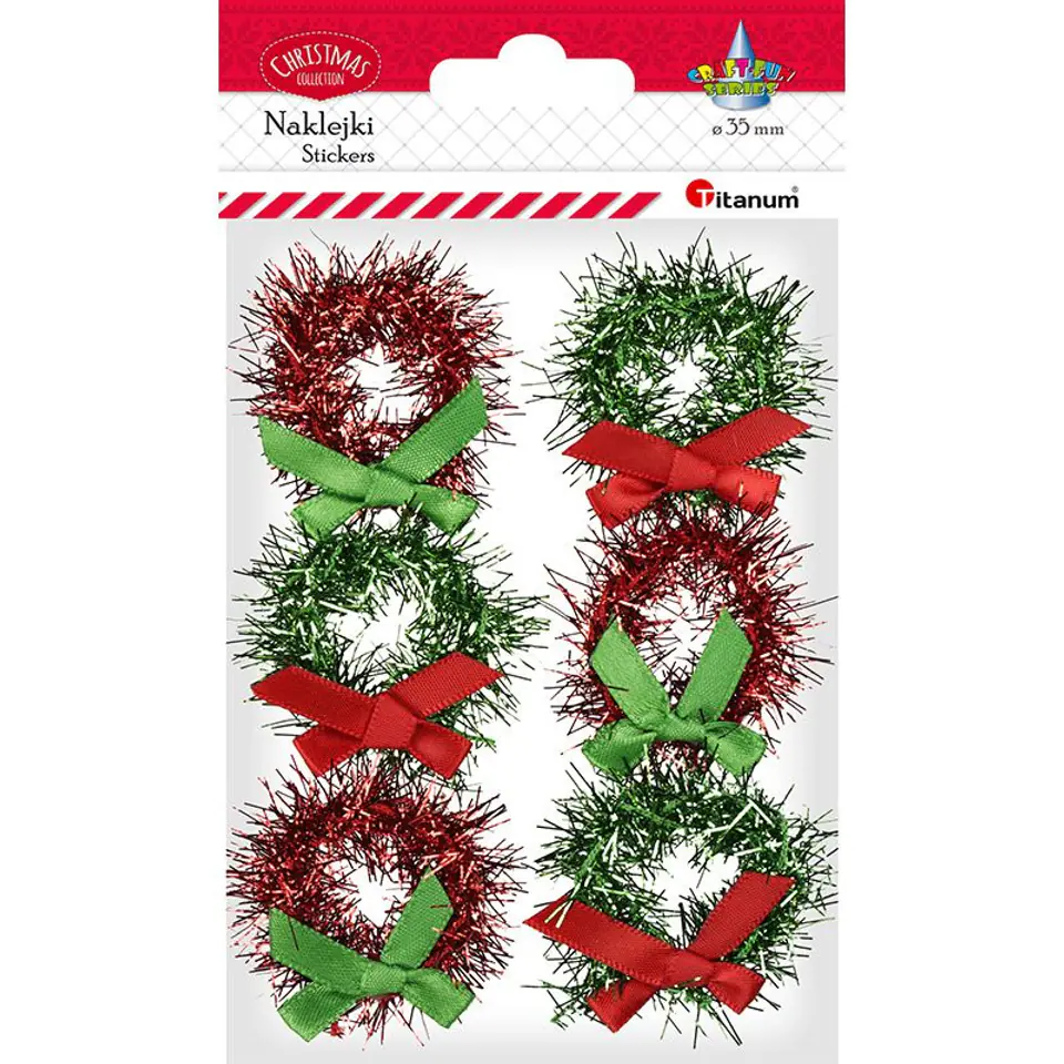 Naklejki 3D, struktura foliowego łańcucha na choinkę, kolory: zielony, czerwony, średnica 35 mm. 6 szt.