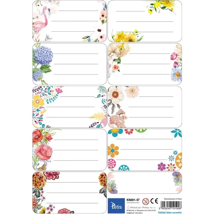 Naklejki na zeszyty ksiązki w kwiaty 25 arkuszy TETIS