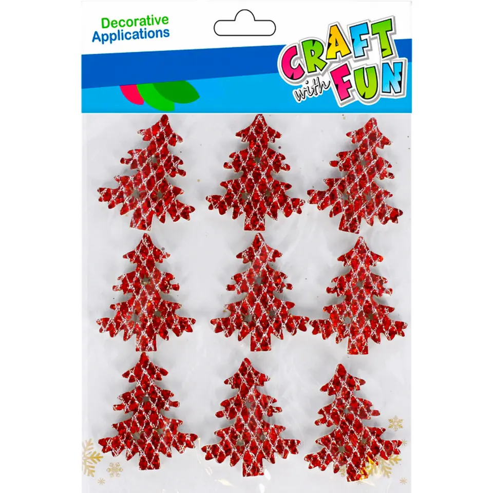 Naklejki piankowe brokatowe czerwone Choinki 9szt. 501370