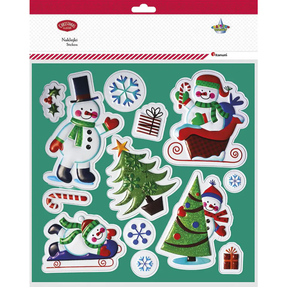 Naklejki wypukłe bałwanki, choinki, prezenty mix 13szt. 487003 TITANUM