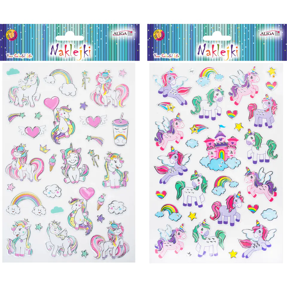 Naklejki wypukłe JEDNOROŻCE mix 14x21cm NK-9098 ALIGA