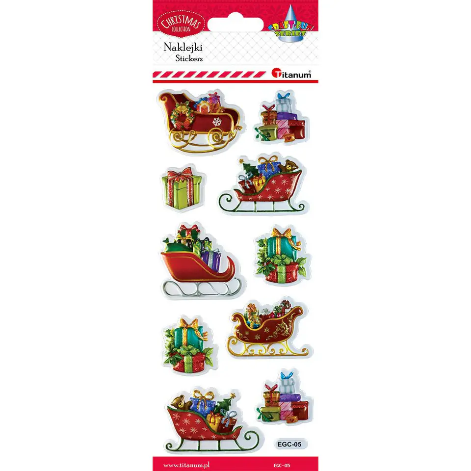 Naklejki wypukłe miękkie sanie i prezenty 10szt. 457772 TITANUM