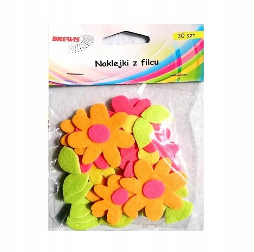 Naklejki z filcu KWIATKI, 30 szt. FVC04 BREWIS
