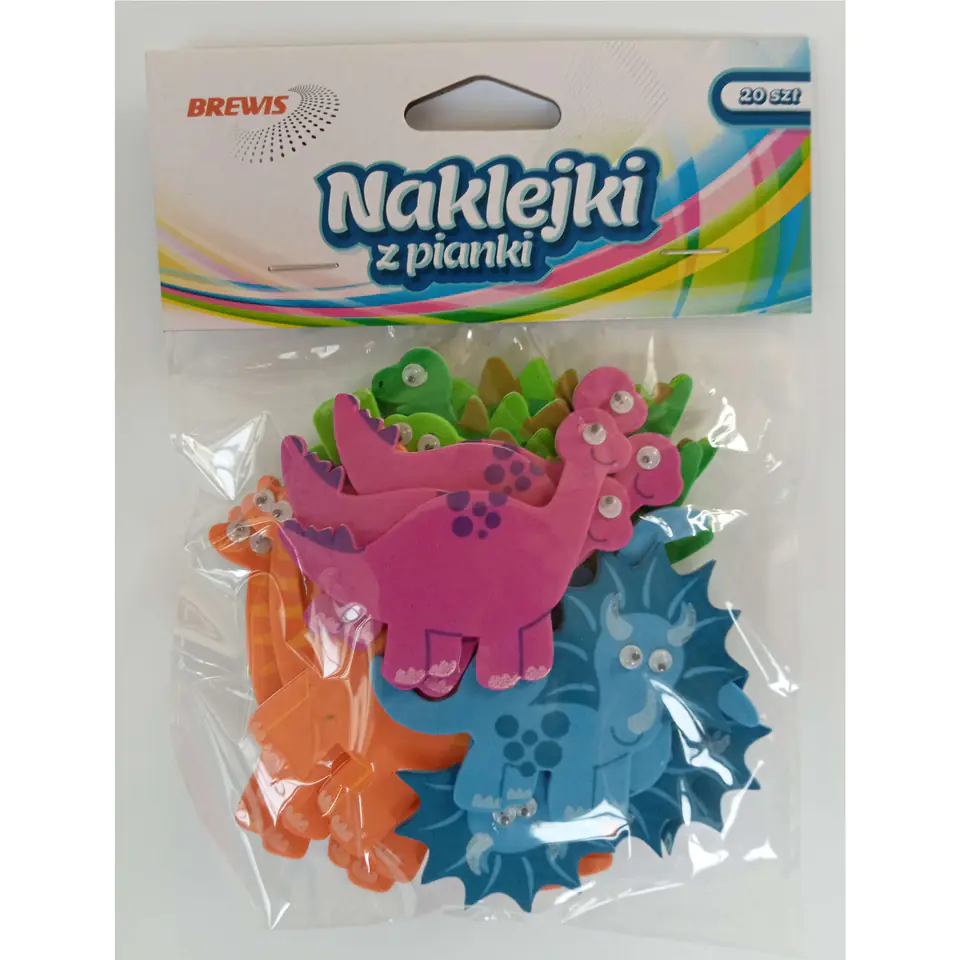 Naklejki z pianki DINOZAURY z oczkami 20 szt. PVC50 BREWIS