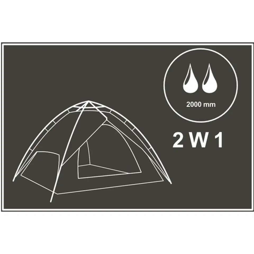 Namiot rozkładany jest za pomocą szybkiego systemu POP UP, polegającego na szybkim i łatwym rozstawieniu konstrukcji i wypchnięcia jej w górę. Dzięki temu innowacyjnemu projektowi namiot rozłożysz i złożysz w kilka minut, nawet podczas gwałtownej zmiany pogody. Po prostu rozłóż go i ciesz się przygodą!