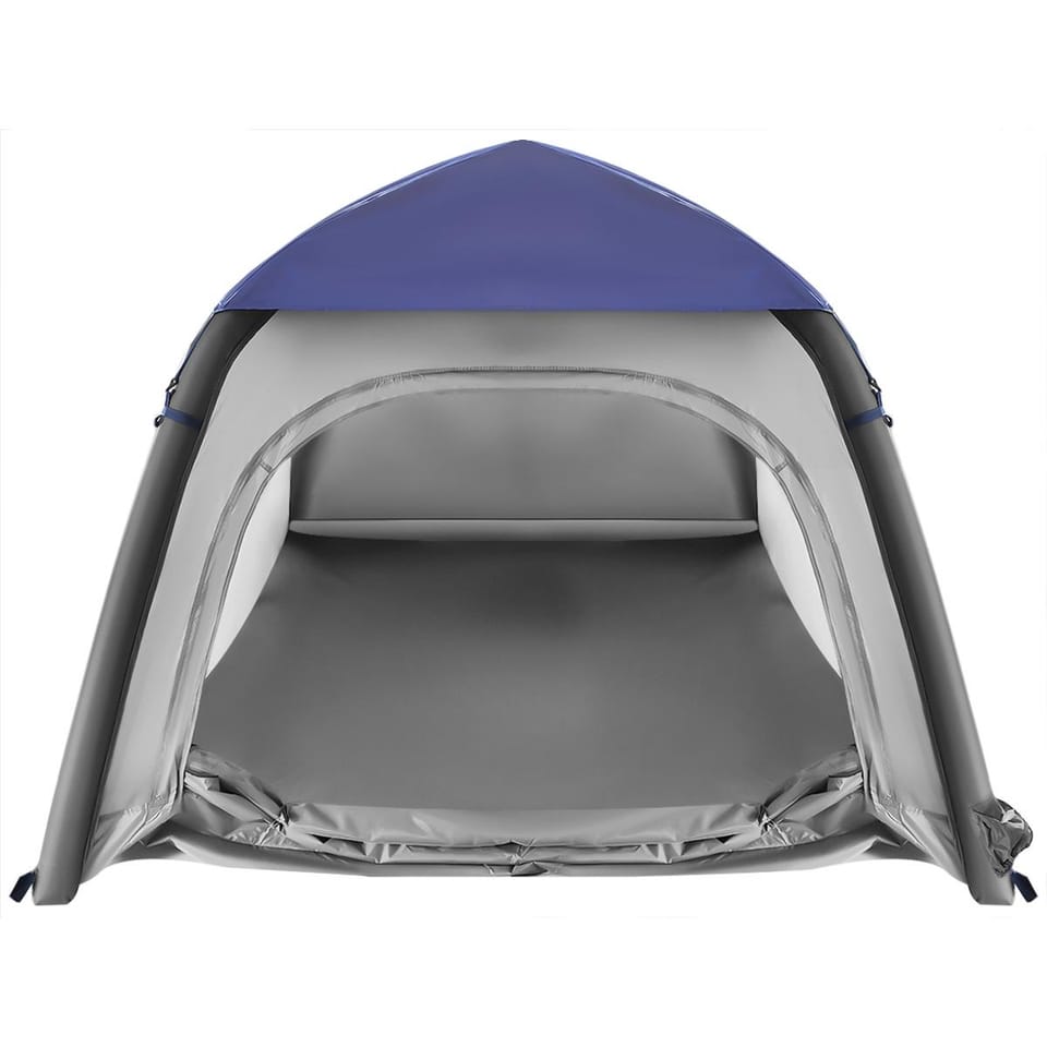 Zamiast tradycyjnego stelaża namiot posiada dmuchane rurki, które po napompowaniu nadają mu stabilność i wytrzymałość. To rozwiązanie pozwala na błyskawiczne rozstawienie namiotu bez skomplikowanego montażu. Wystarczy użyć pompki, aby w kilka minut cieszyć się gotowym miejscem do odpoczynku.
