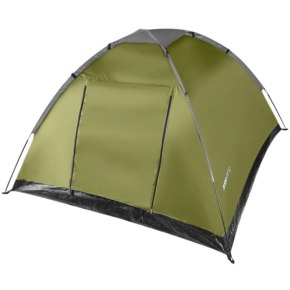 Parametry:- Wymiary zew. ok.: 200 x 200 x 115 cm (szer. x dł. x wys.)Wysokość rozłożonego namiotu ok.: 115 cmWymiary wejścia ok.: 59 x 83 cm (szer. x wys.)Materiał: materiał wierzchni poliester 190T, podłoga PE 120 g/m2, stelaż włókno szklane 0,8 mmWodoodporność na poziomie 3000 mm (niska)Dodatkowe wyposażenie: 1 x wewnętrzna siateczkowa kieszonka, moskitiera przy drzwiach i otworach wentylacyjnychZamek dwukierunkowy, dwustronnyMożliwość zwinięcia wejścia i okna w rolkę: takIlość drzwi: 1Waga netto ok.: 2,150 kgWaga brutto ok.: 2,300 kgLiczba miejsc: maks. 4 os.Paski kompresyjne w pokrowcu: takPrzeznaczenie: kemping, biwak, koncert, do ogródka, na działkęW zestawie: namiot, pokrowiec, instrukcja obsługi, śledzie, linki do naciągu, mały daszekSzwy podklejane: tak, na ściankach bocznychMarka: Enero Camp
