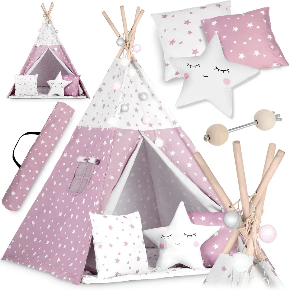 Aby zabawa była jeszcze przyjemniejsza do tipi dołączamy poduszki z doskonałej jakości bawełny i matę izolującą z antypoślizgowymi wypustkami.