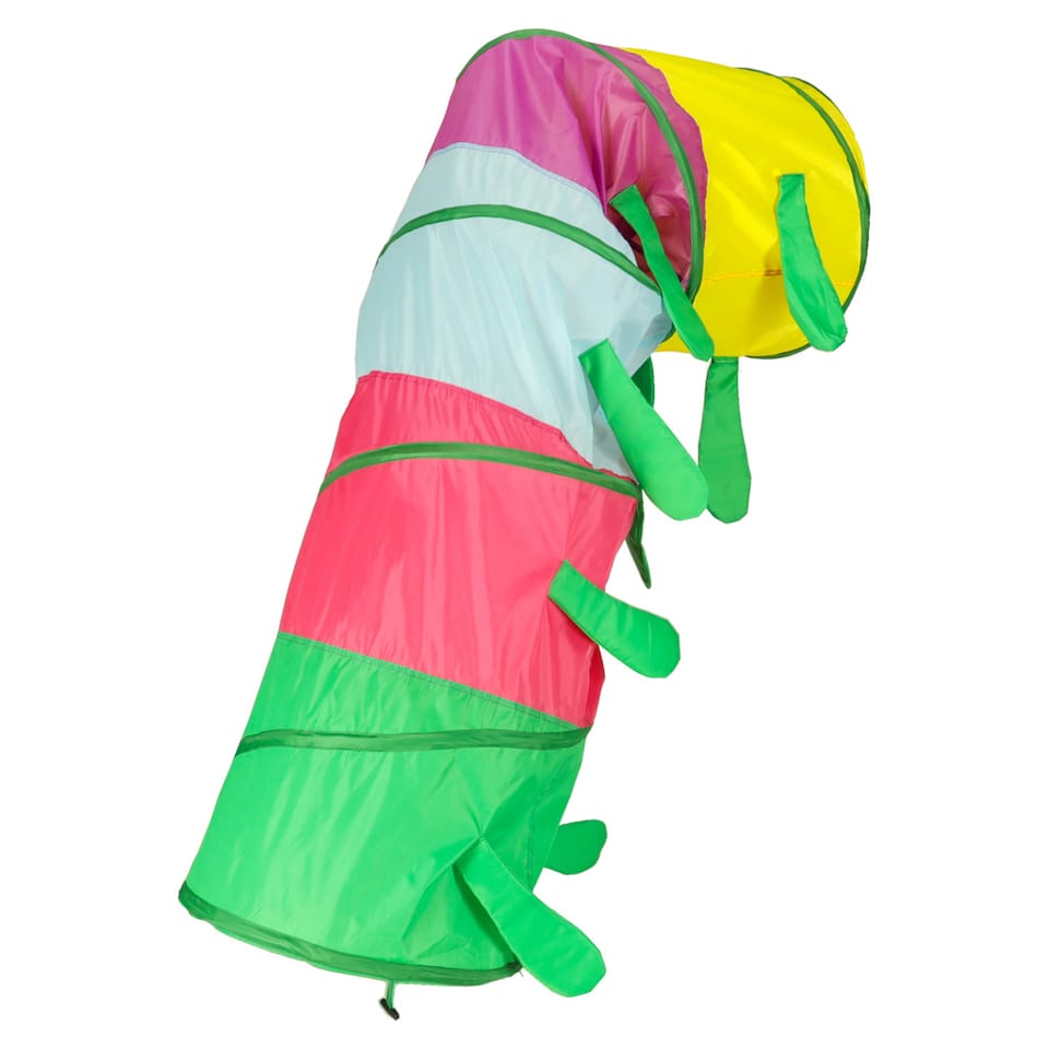 Z tunelu można korzystać na wiele sposobów. Można doczepić gąsienicy głowę i ogon bądź pozostawić otwarte przejścia. Przemyślana samorozkładająca się konstrukcja oraz wygodne etui umożliwia rozłożenie tunelu w pomieszczeniu oraz na zewnątrz.