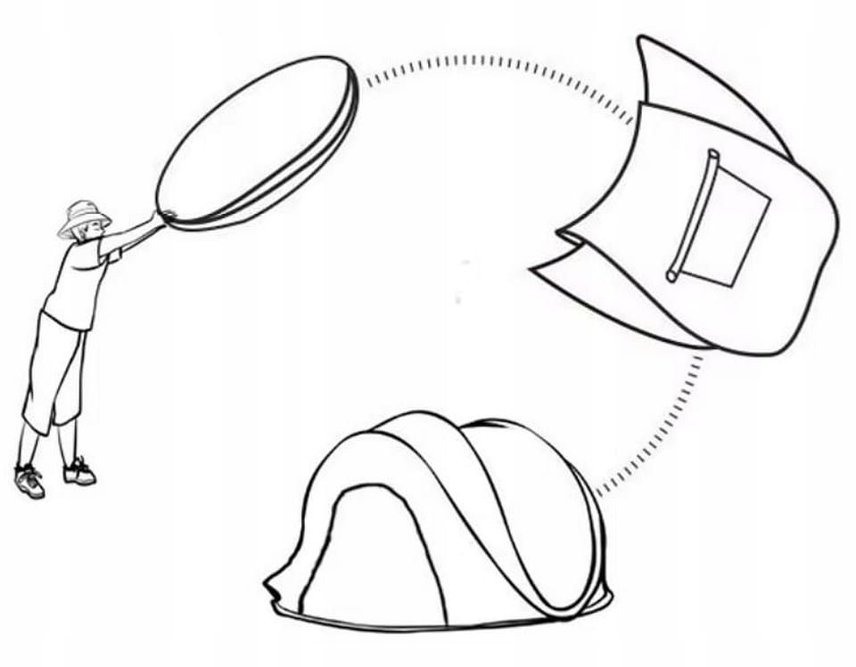 rozłożenie namiotu odbywa się samoczynnie. W złożeniu namiotu i umieszczeniu w torbie pomoże instrukcja obrazkowa.