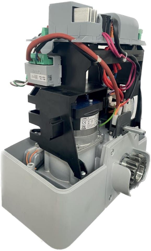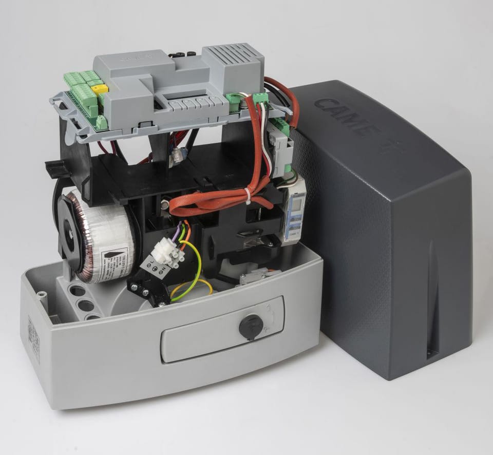 BKX08AGF to szybki napęd przeznaczony do bram przesuwnych o wadze do 800kg, z silnikiem bezszczotkowym 24VDC z prędkością przesuwu do 24 m/min. Centrala sterująca posiada wyświetlacz graficzny z menu w języku POLSKIM. Ponadto wyposażona jest w technologię CXN BUS oraz Adaptive Speed & Torque Technology, obsługuje programowanie przez CAME KEY, Sama centrala umożliwia zapisanie aż 1000 użytkowników [piloty/kody dostępu/breloki].