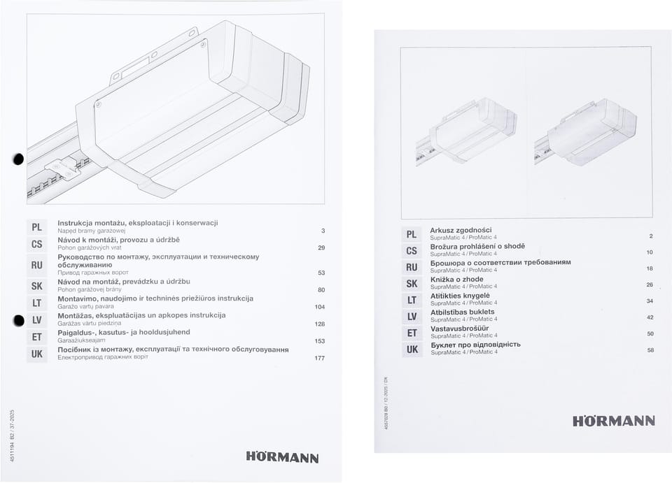 Napęd/siłownik Hörmann Supramatic E4 (4511035) przeznaczony jest do bram garażowych segmentowych i uchylnych, których powierzchnia całkowita nie przekracza 13,75m2.