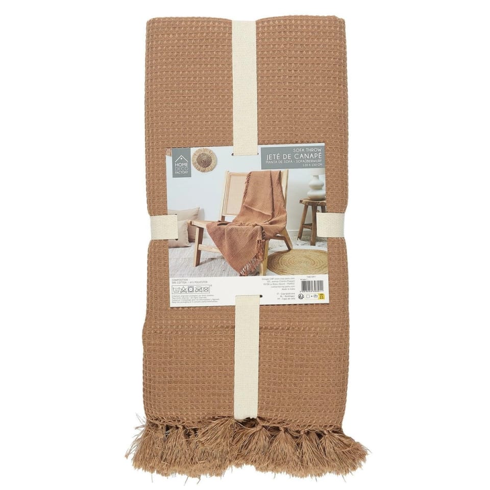 Narzuta na łóżko waflowana 120x150 cm ochra