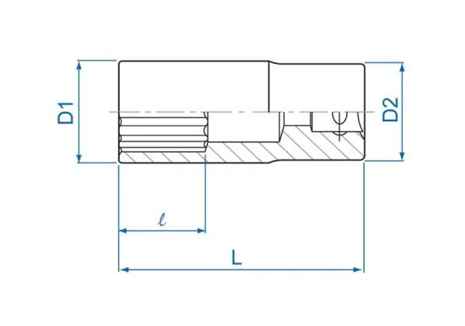 Nasadka długa 1/2" firmy King Tony. Rozmiar nasadki 1-1/8", długość 77 mm. Nasadka 12-kątna, wykonana ze stali chromowo-wanadowej, polerowana oraz chromowana. Wymiary ( mm ) : D1 - 37,8 D2 - 32,5 l - 28 L - 77 Karta produktu - 423036S