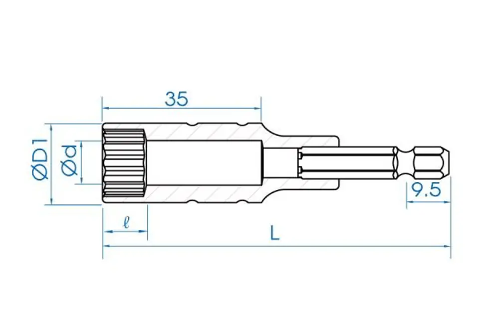 NASADKA DŁUGA 12-KĄTNA DO WKRĘTAREK 1/4" 16mm x 80mm King Tony