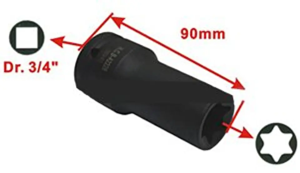 Nasadka Torx-E28Wymiar E28Długość 90 mmKwadrat zabierający 3/4 calaDo samochodów Scania
