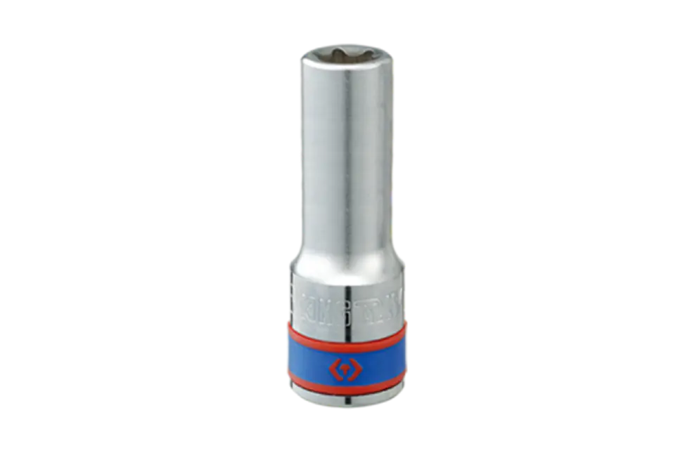 Nasadka długa gwiazdkowa 1/2" E22 firmy King Tony. Długość nasadki 77 mm, stal chromowo wanadowa, wykończenie chromowe. Karta produktu - 427522M