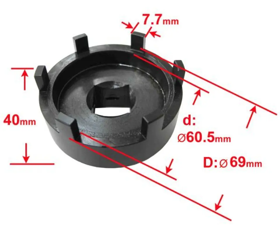 Nasadka 1/2”, średnica wewnętrzna 60,5 mm, średnica zewnętrzna 69 mm, 6 zębów, szerokość zęba 7,7 mm
