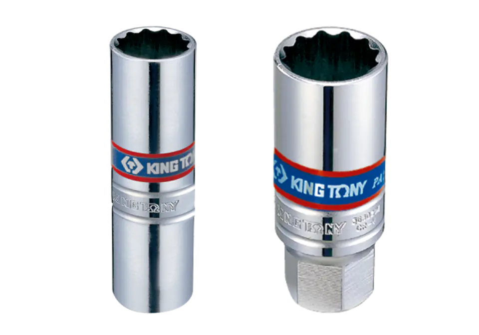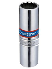 Nasadka do świec 3/8" King Tony. Nasadka w rozmiarze 14 mm x 63 mm 12kątna. Nasadka wykonana ze stali chromowo-wanadowej, polerowana i chromowana. Nasadka posiada wkładkę ze sprężyną. Wymiary: D - 18,9 mm, L - 63 mm Karta produktu - 36A014